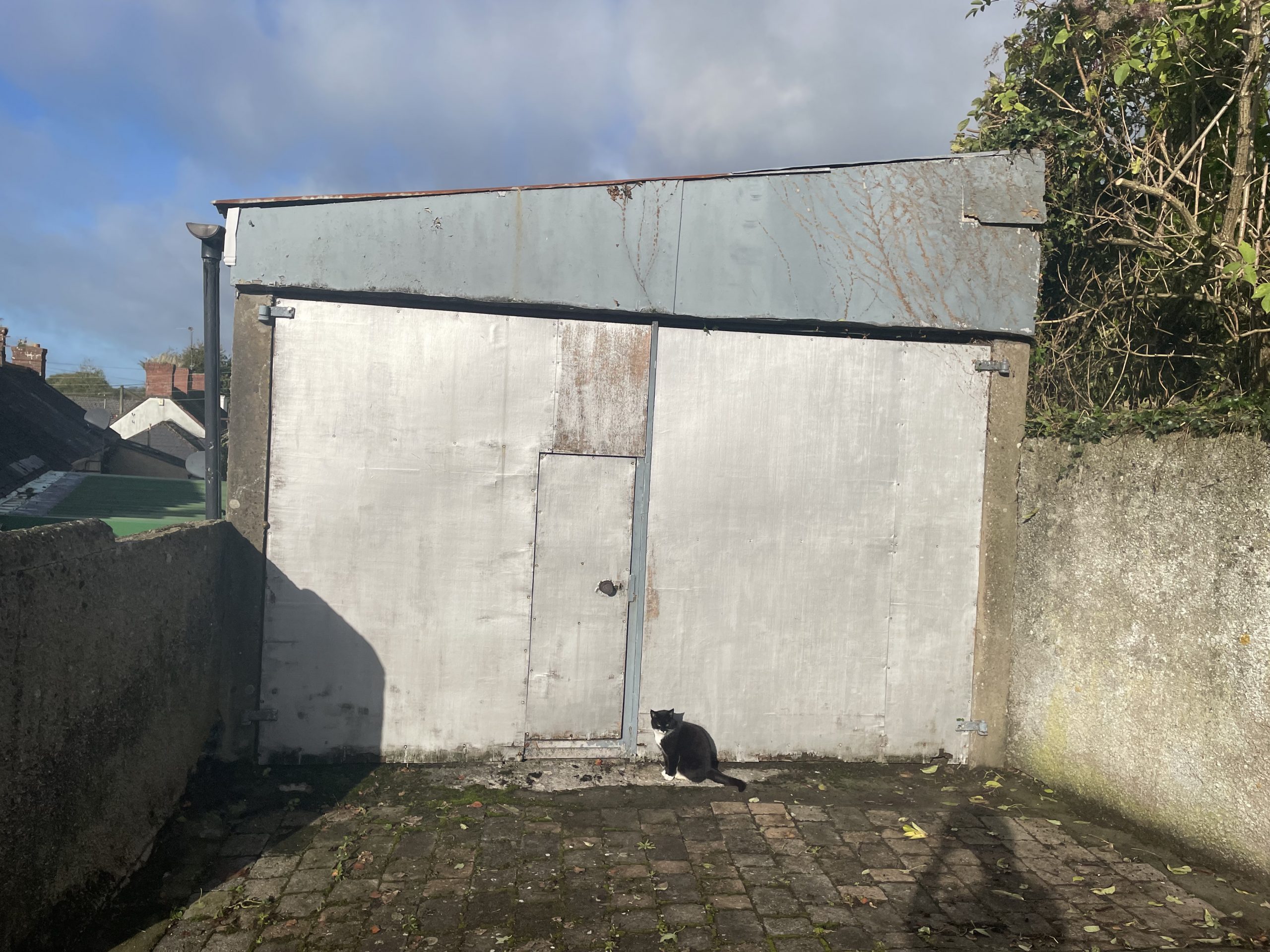 There is a rear yard with two small outbuildings, to the side of the property there is a garage.