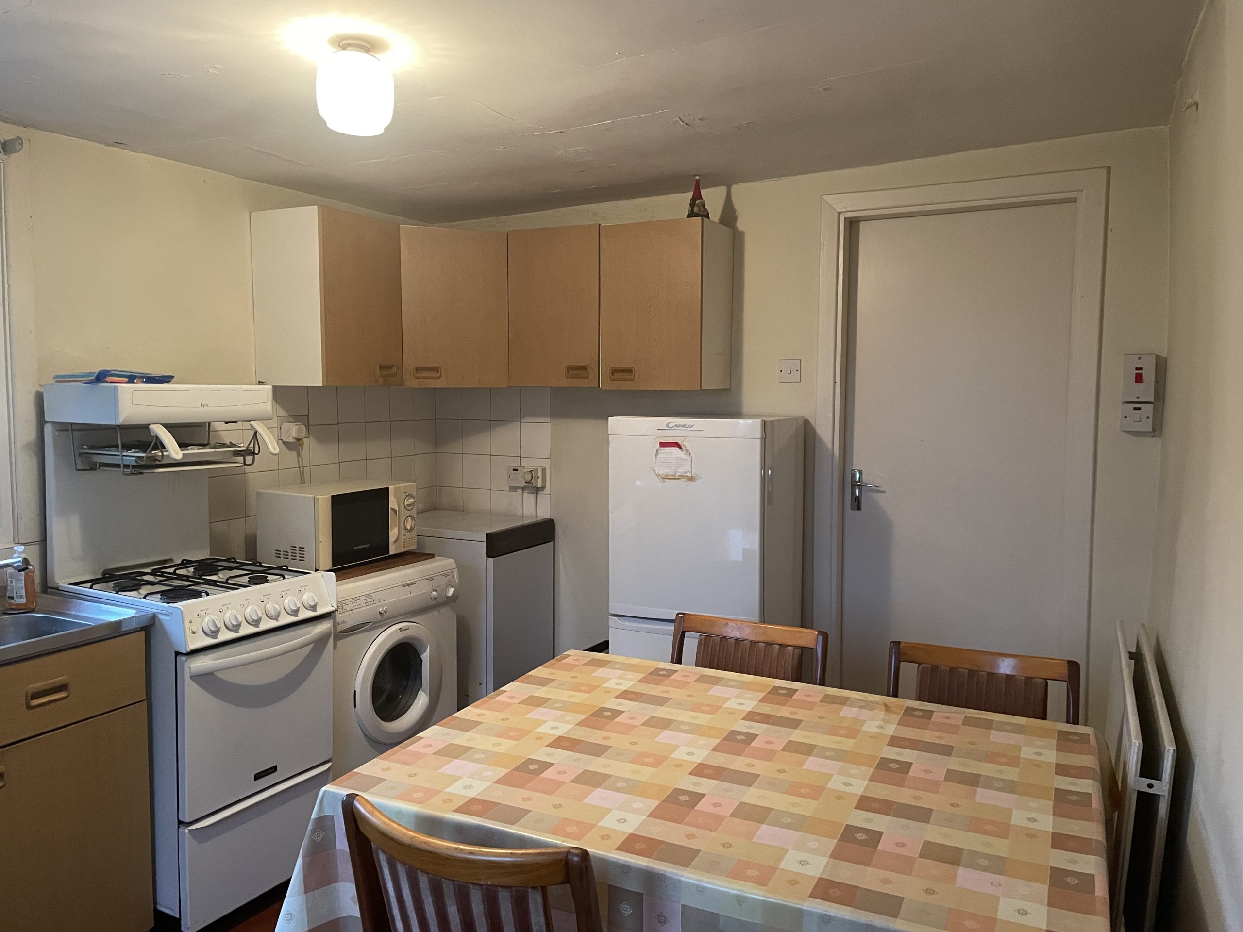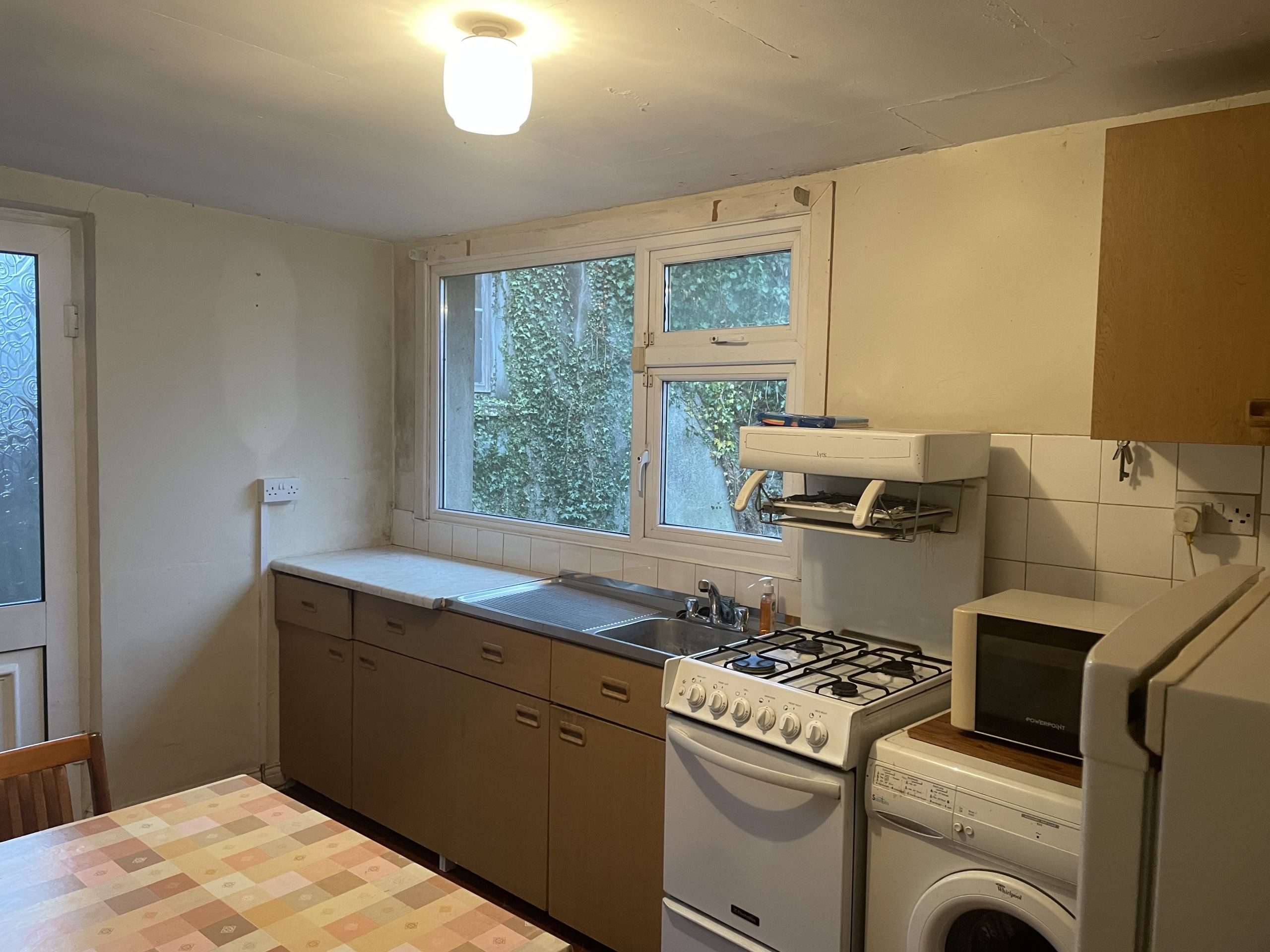 Kitchen: 3.84m x 2.83m, With floor & eye level units, plumbed for washing machine, door to rear yard.