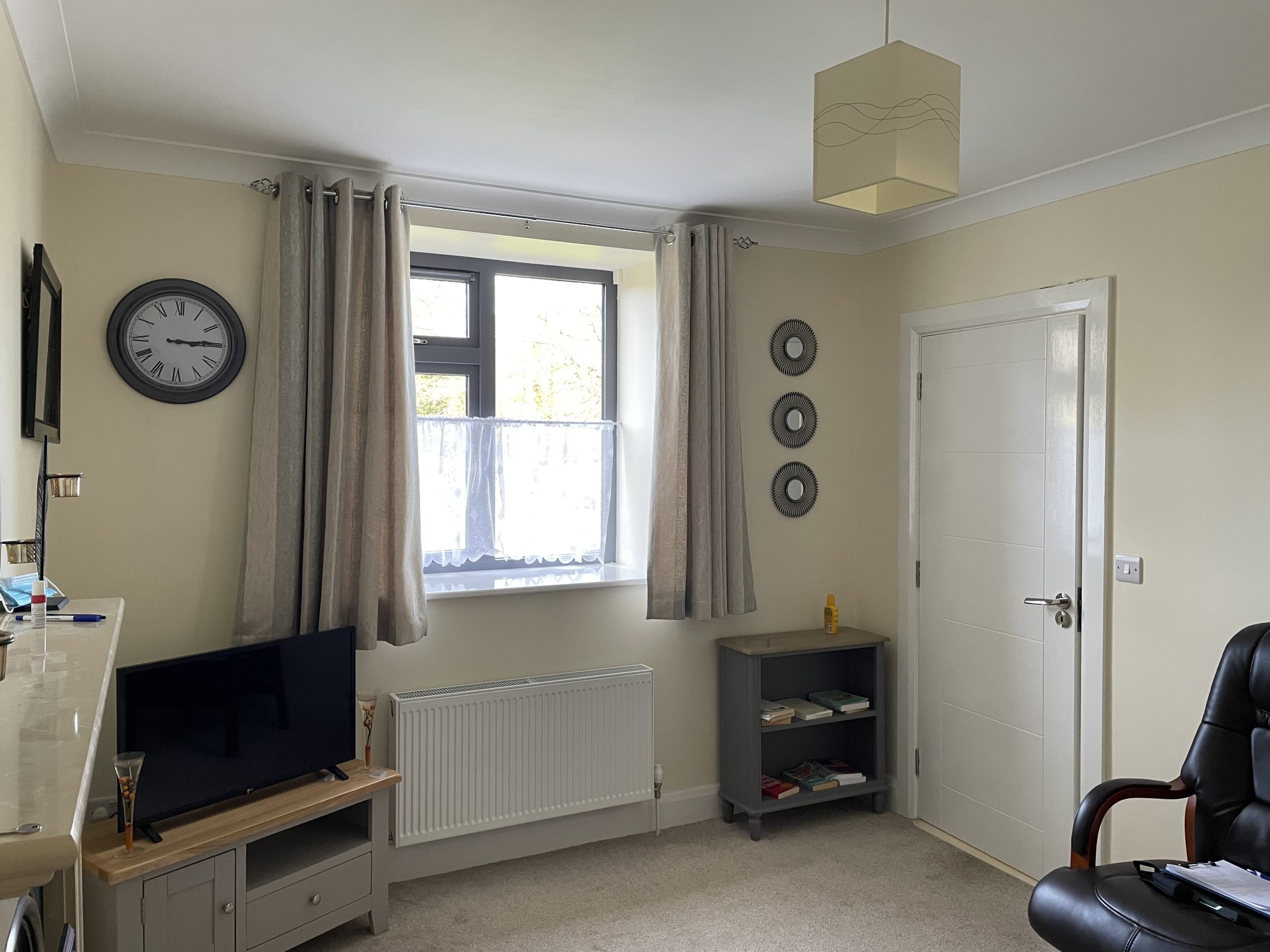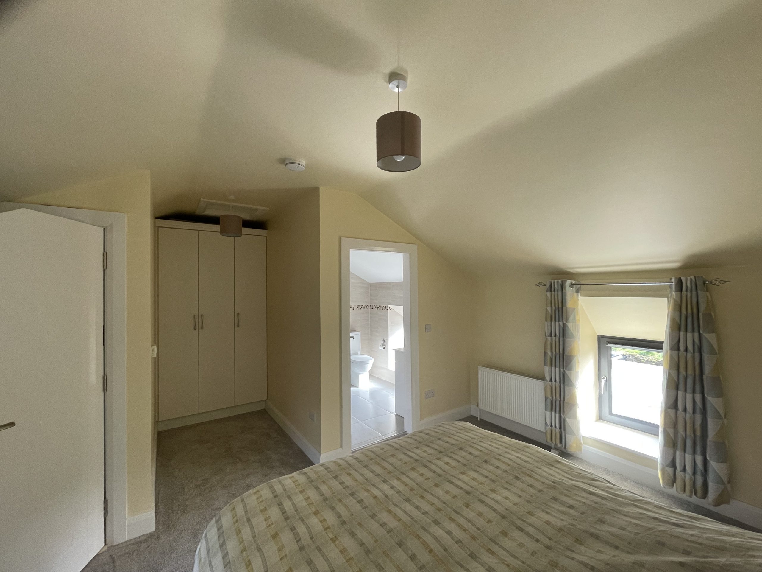 Bedroom 2: 4.83m x 4.69m, Large bright spacious room with carpet flooring, built in wardrobe, En-suite: 2.18m x1.91m, With Tiled floor to ceiling, electric shower, WC, WHB, heated towel rail.