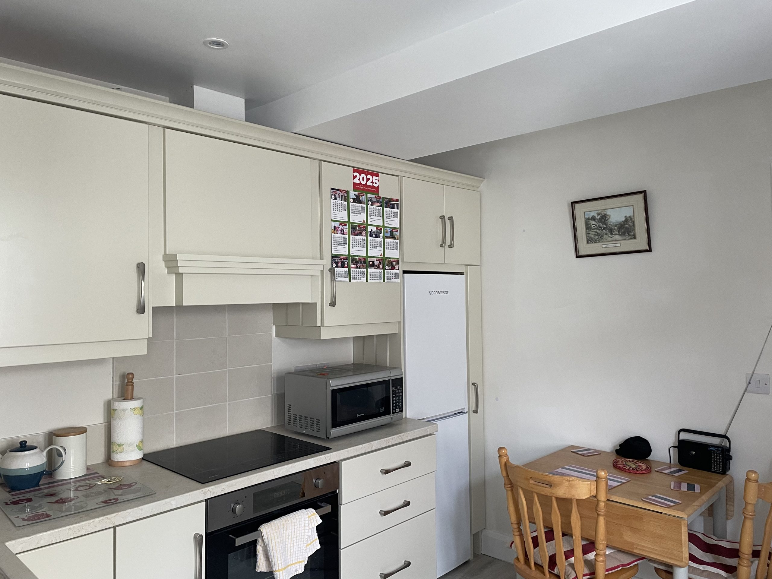Kitchen: 3.15m x 2.88m, Fully fitted kitchen with floor and eye level units, single oven, plumbed for dishwasher, timber flooring.