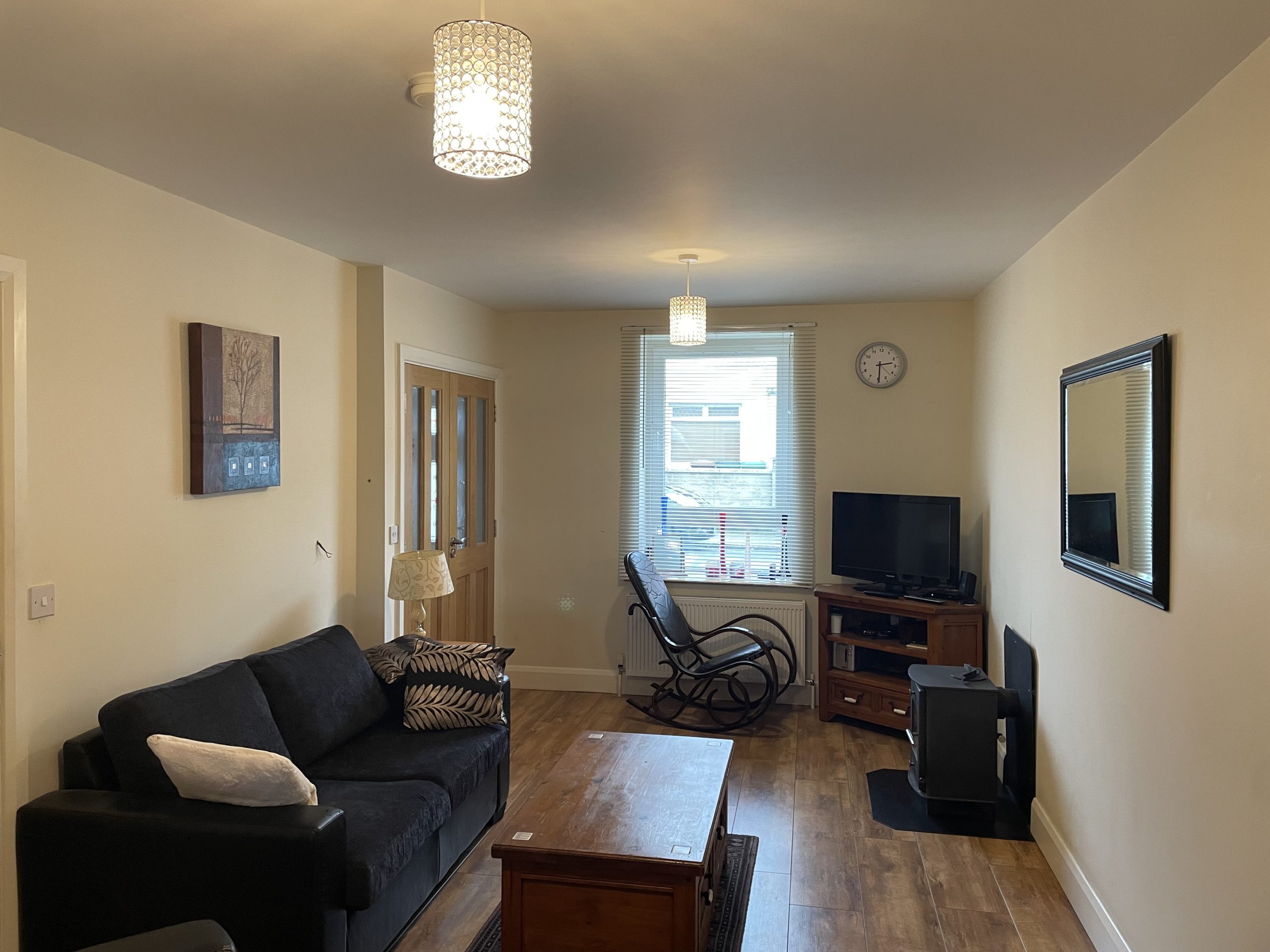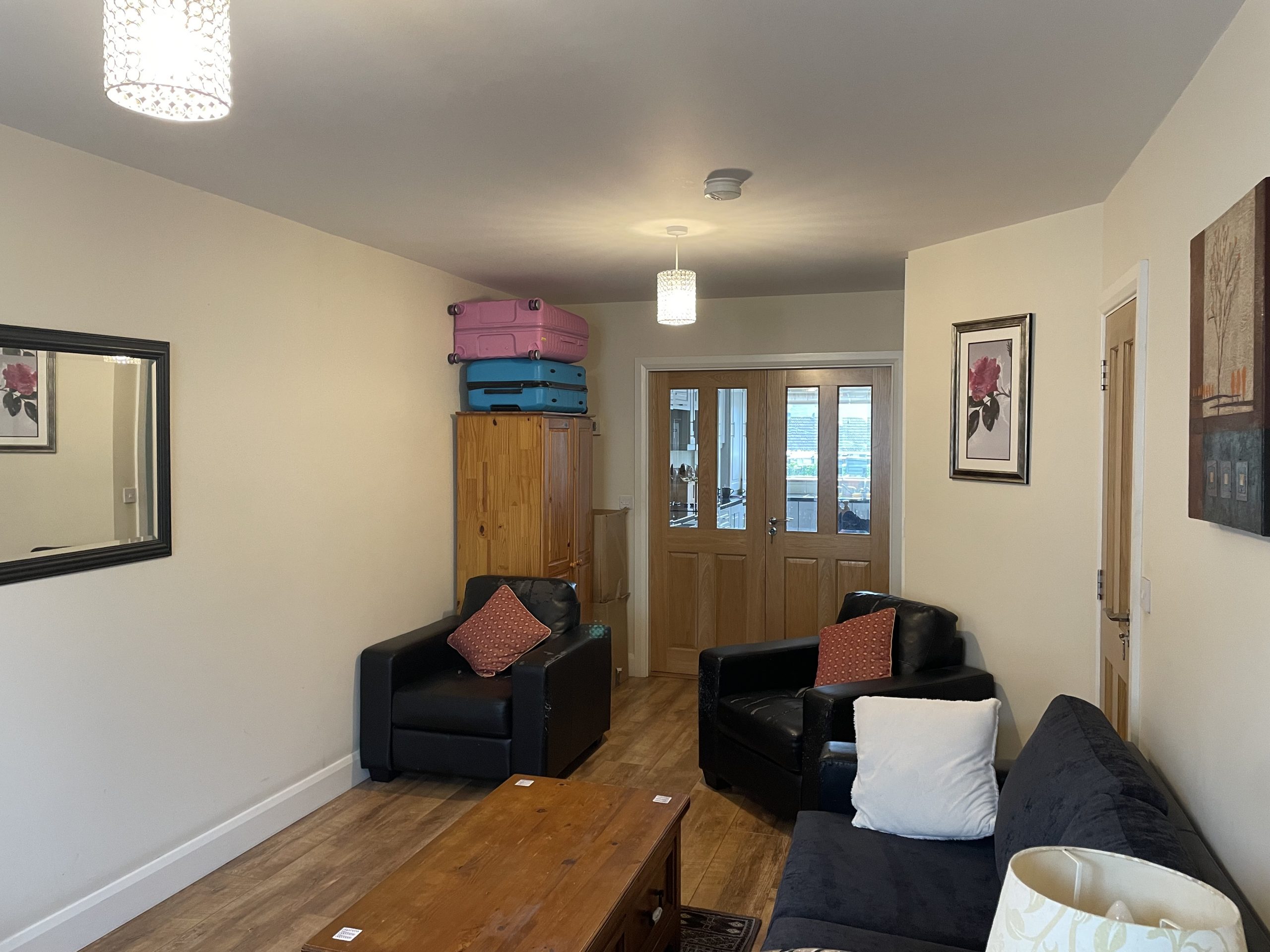 Living Room: 6.46m x 3.07m, With timber flooring, double doors to kitchen, door to understairs storage area.