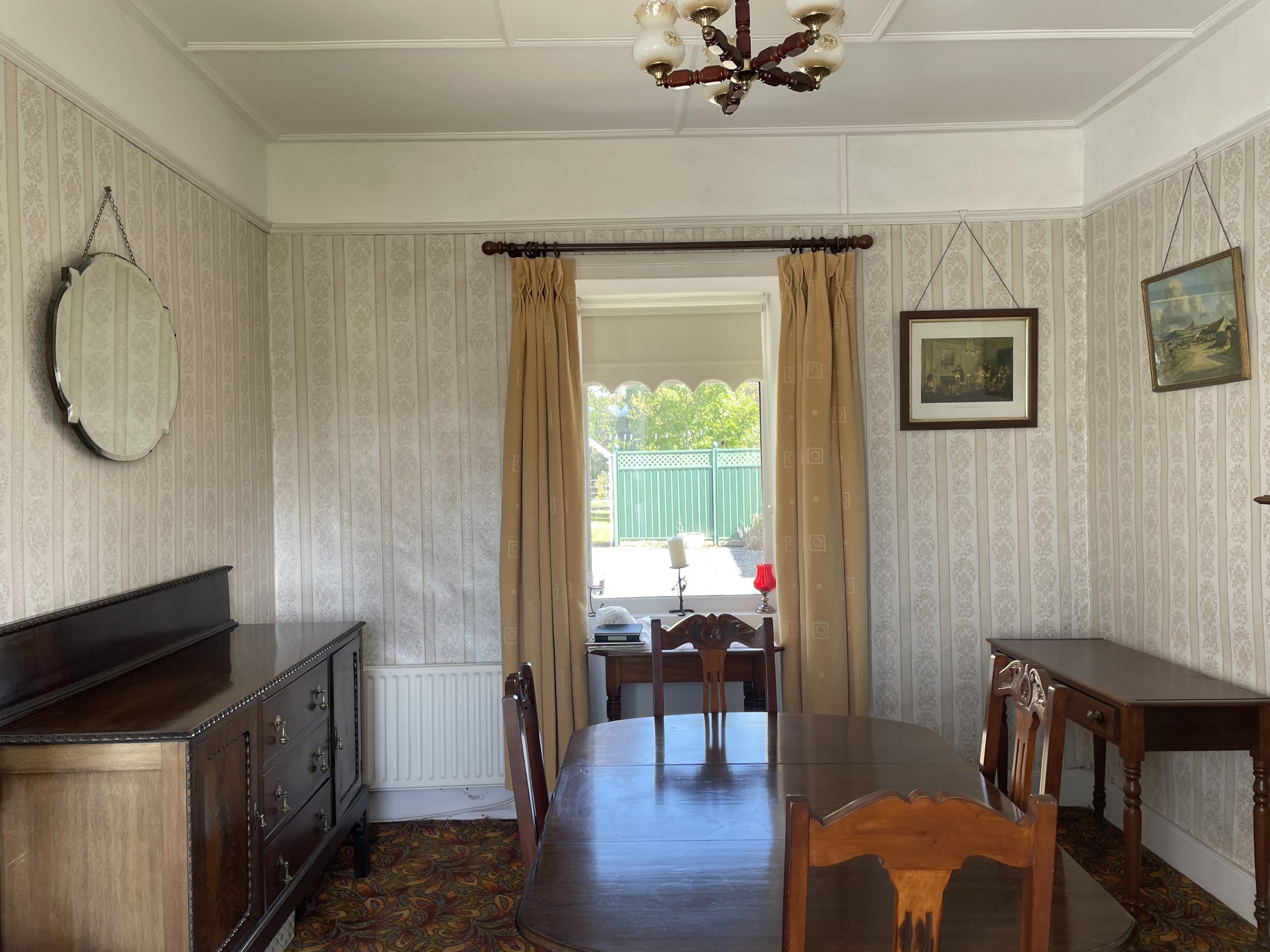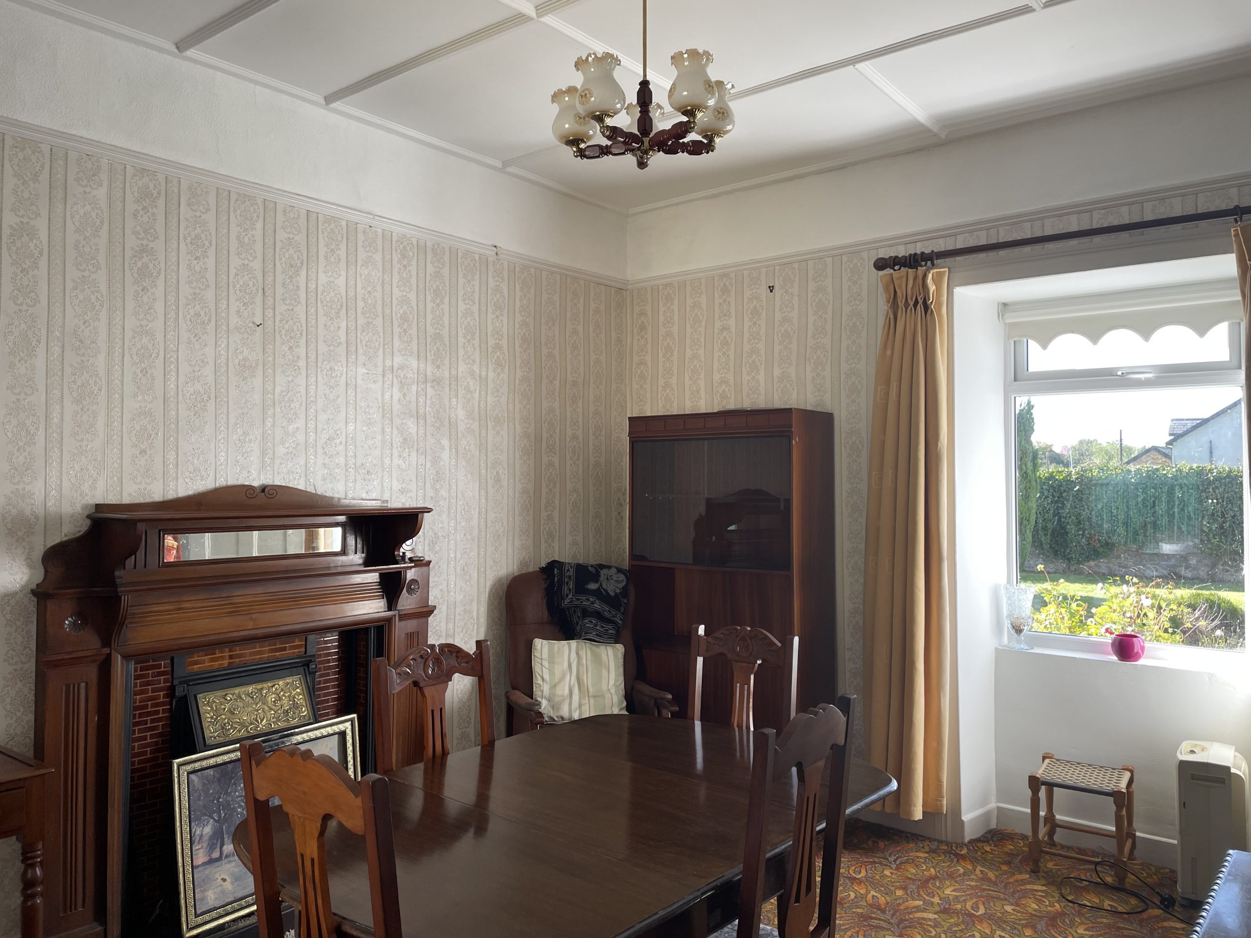 Dining Room: 4.26m x 3.55m, With carpet flooring, open fireplace.