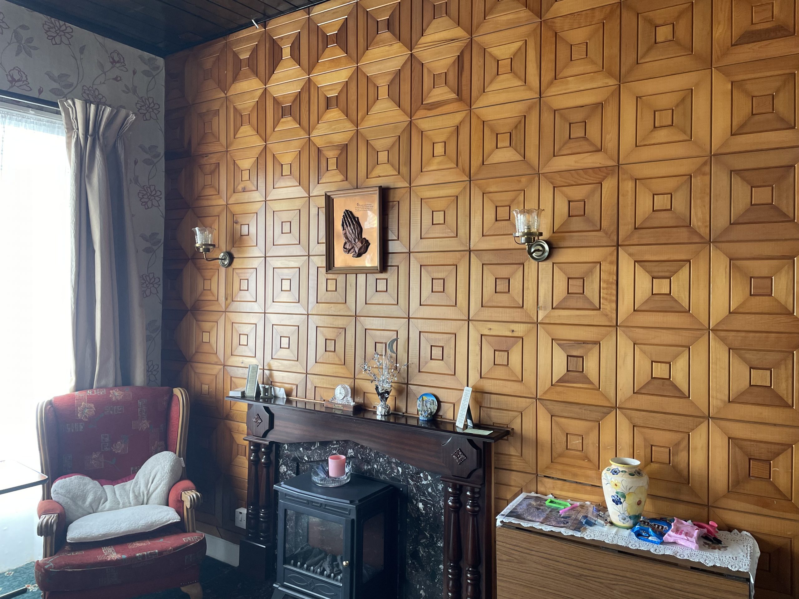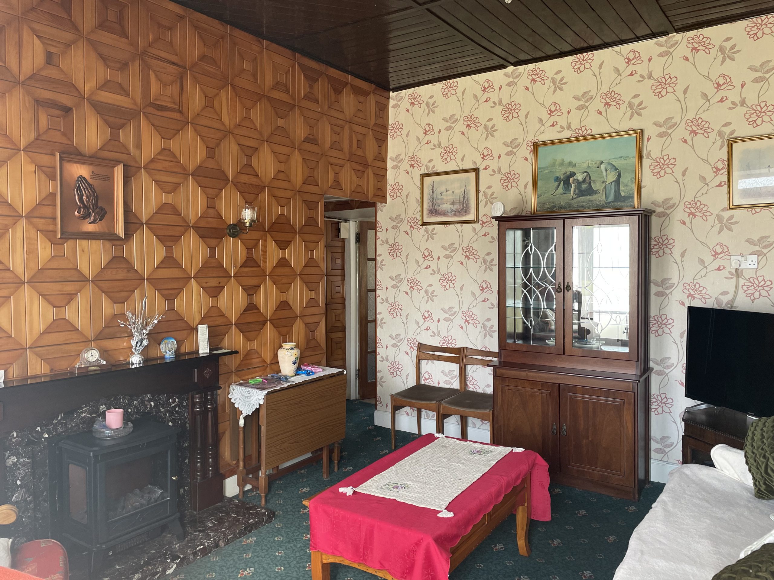 Tv Room: 4.20m x 3.38m, With carpet flooring, open fireplace with electric stove.