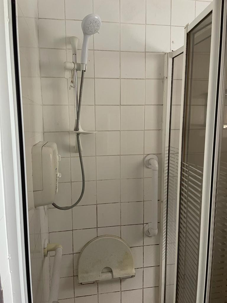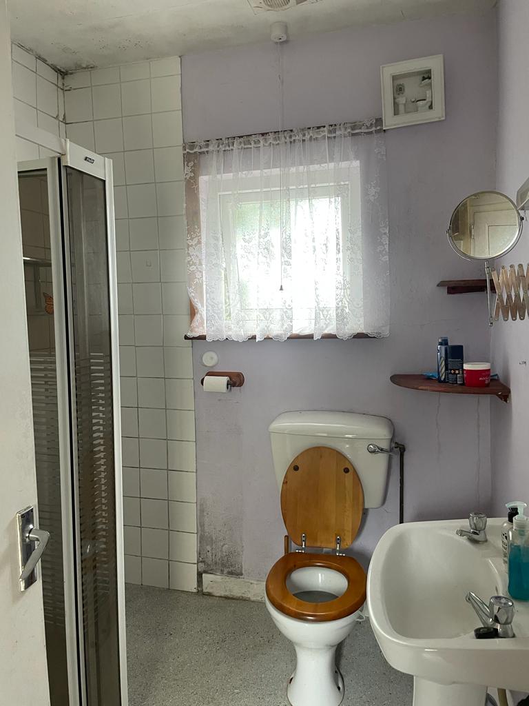 Bathroom: 2.68 x 1.95 Partly tiled, with electric shower, WC, WHB
