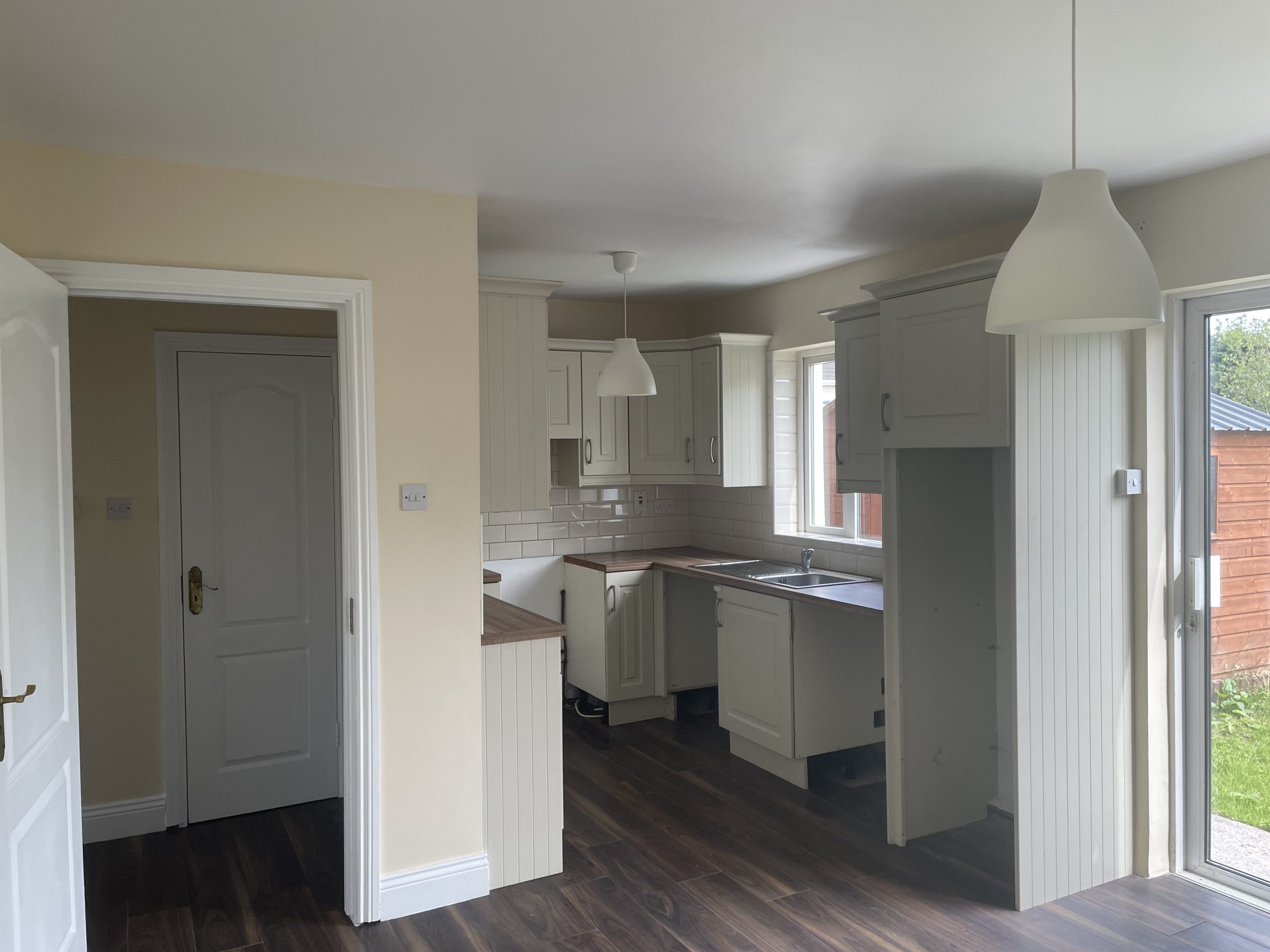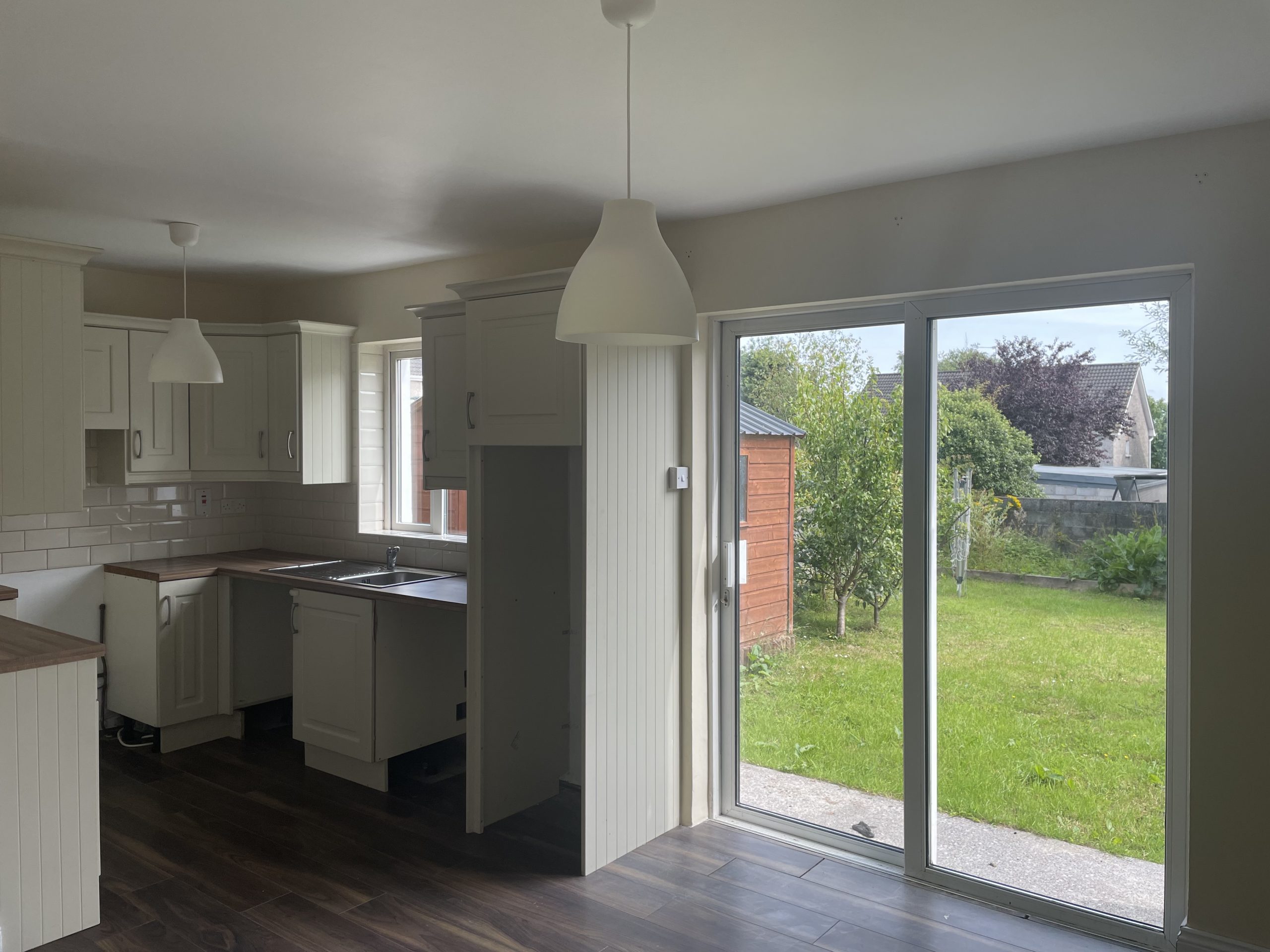 Kitchen/Dining Room: 5.80m x 3.57m, With timber flooring, floor & eye level units, plumbed for washing machine & diswasher, sliding door to rear garden.