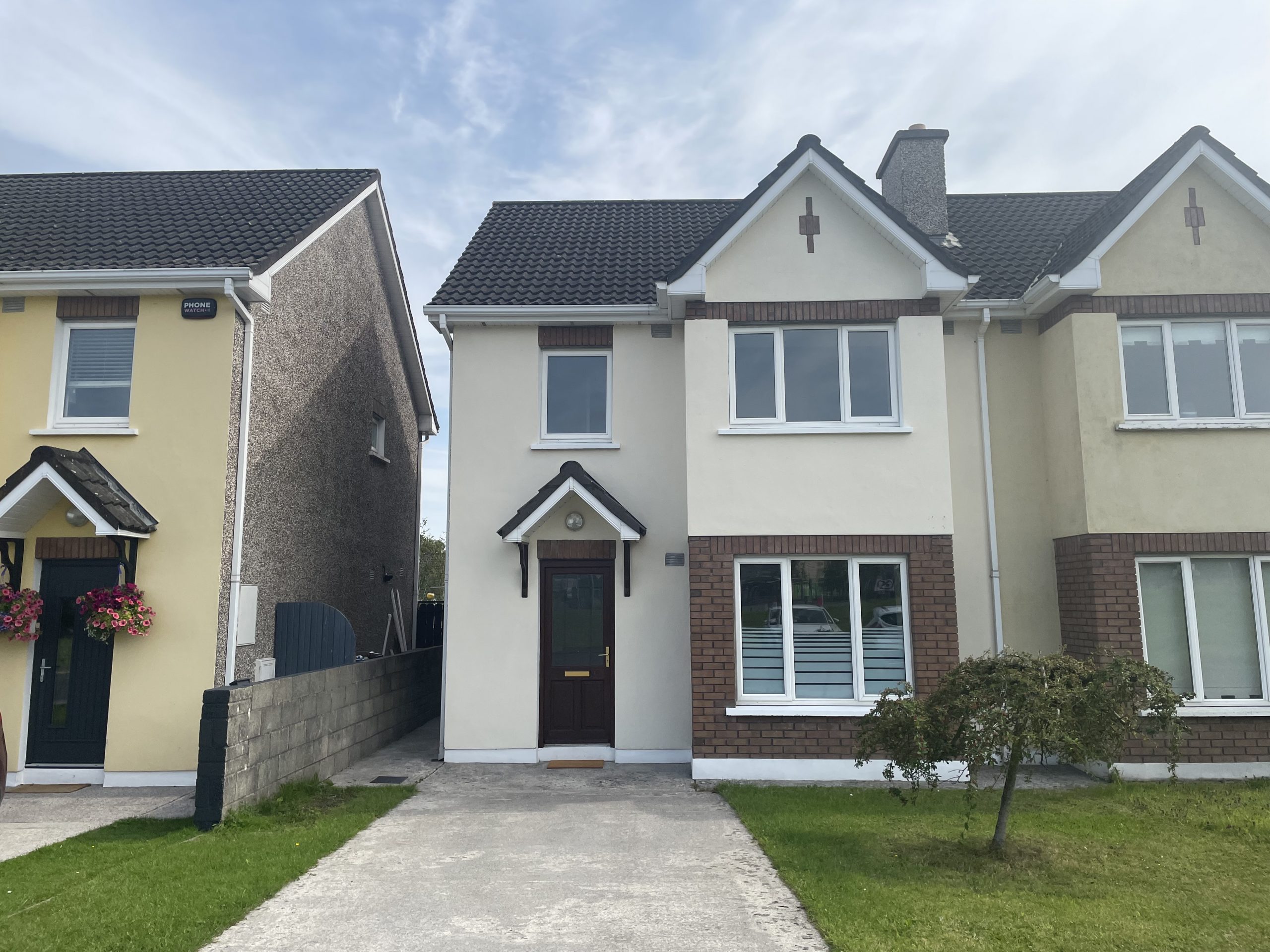 The property is presented in good condition throughout and offers spacious living accommodation with side entrance, enclosed rear garden and open plan front garden with driveway. Ground floor level consists of a large open plan kitchen/dining area with a generous living room to the front. Upstairs enjoys three bedrooms, master en-suite and a bathroom. Located in a quiet cul de sac position c: 200 metres from the Gaelscoil and within walking distance of all amenities, this family home comes highly recommended for viewing.