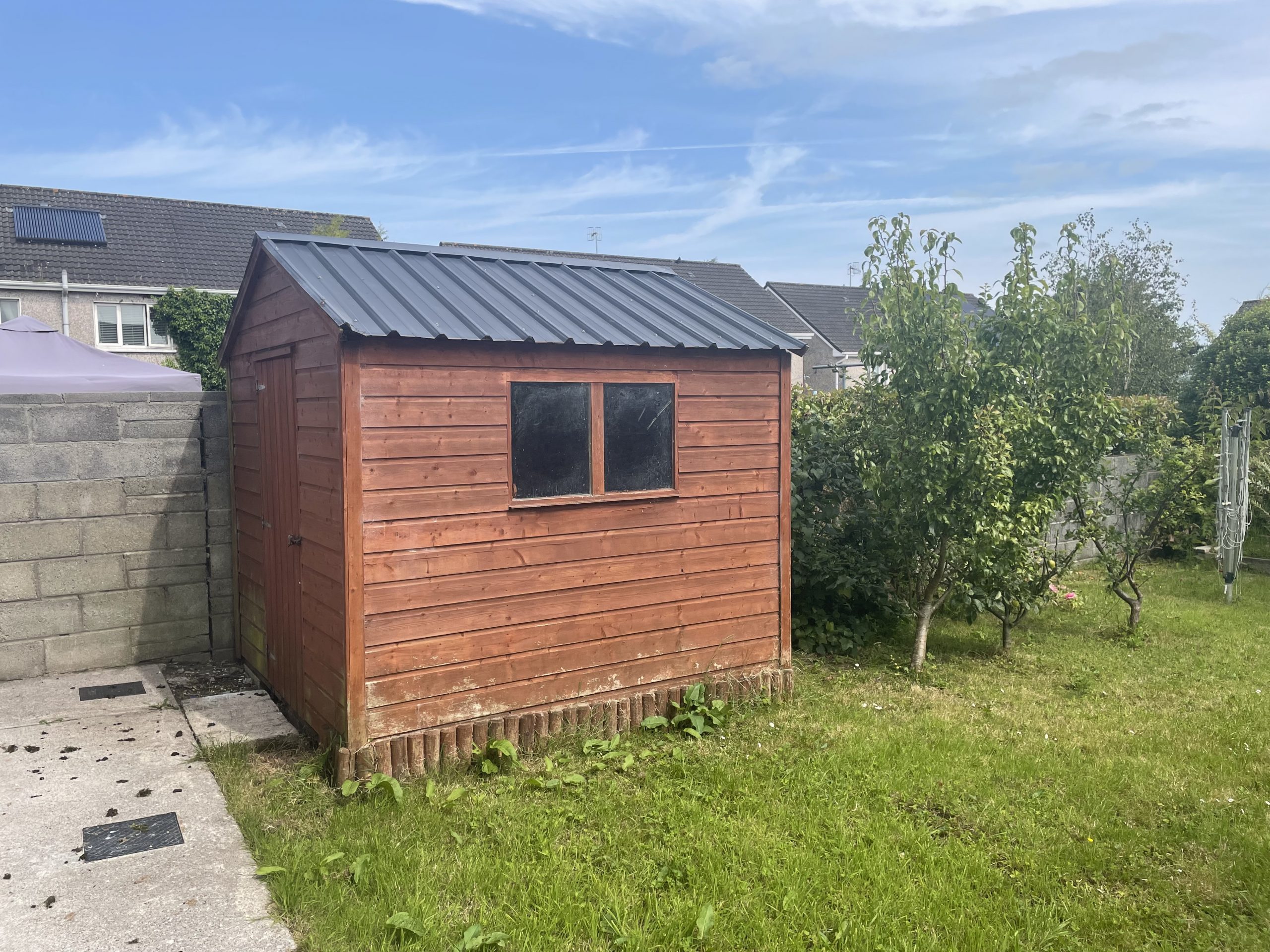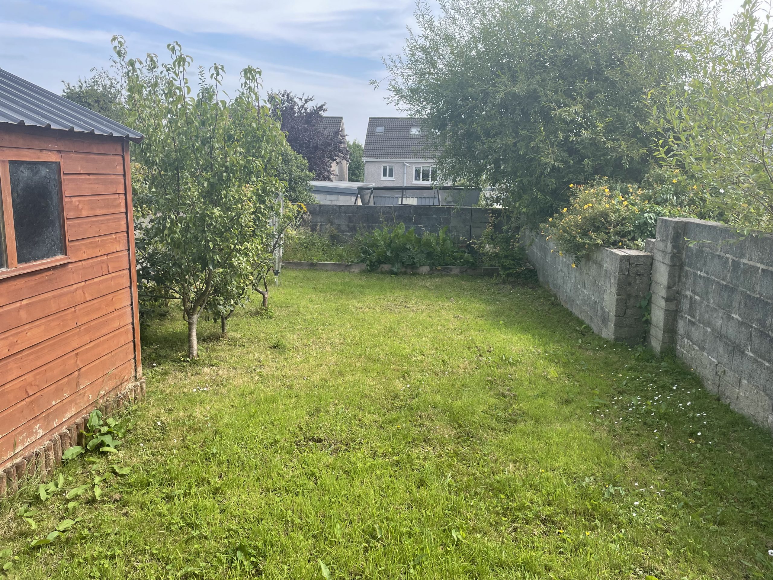 Enclosed garden to rear of property with garden shed.