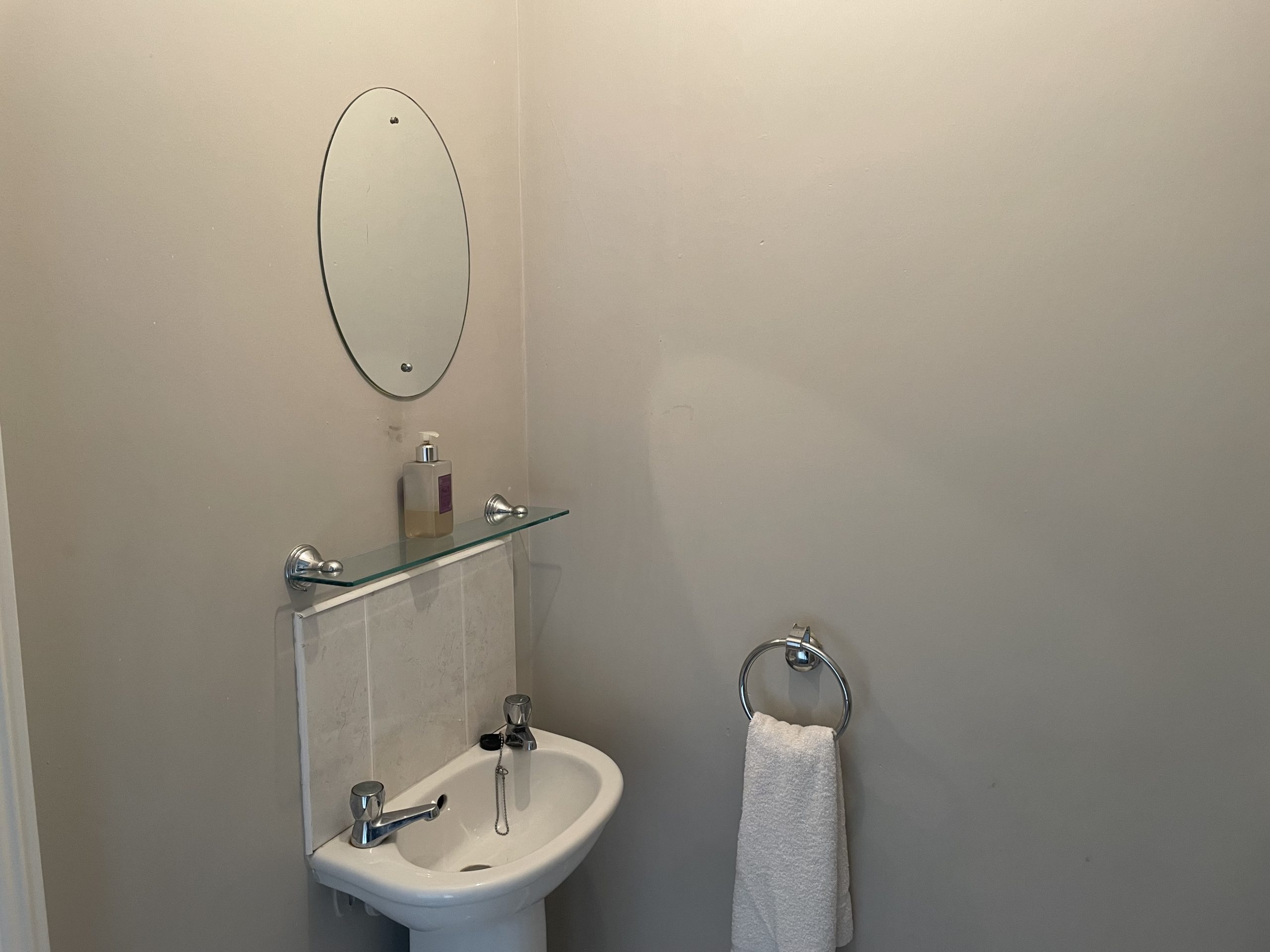 Downstairs WC: 1.64m x 0.89m, With tiled floor, wash hand basin, WC.