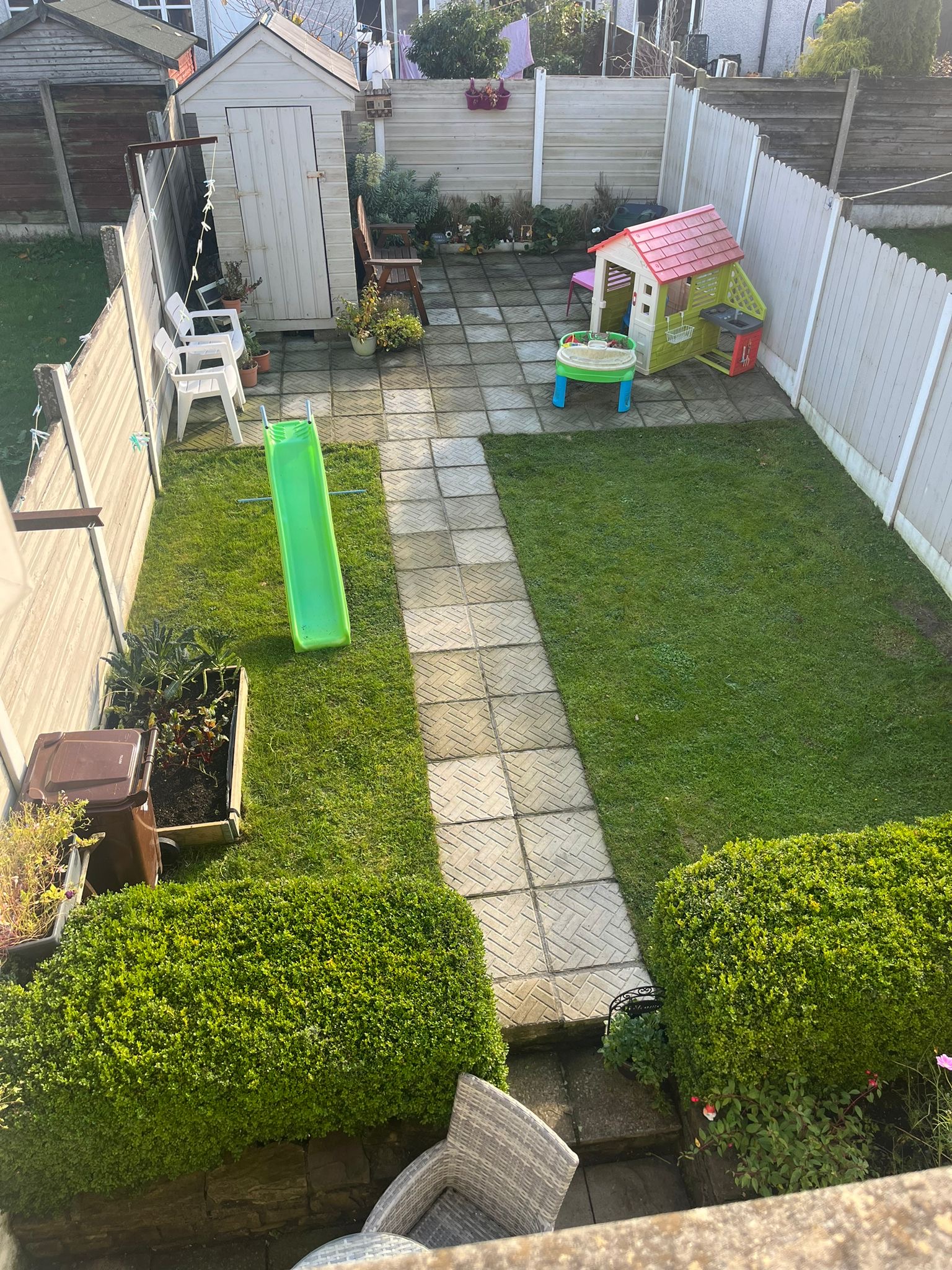 Enclosed low maintenance garden to rear with patio area & garden shed.
