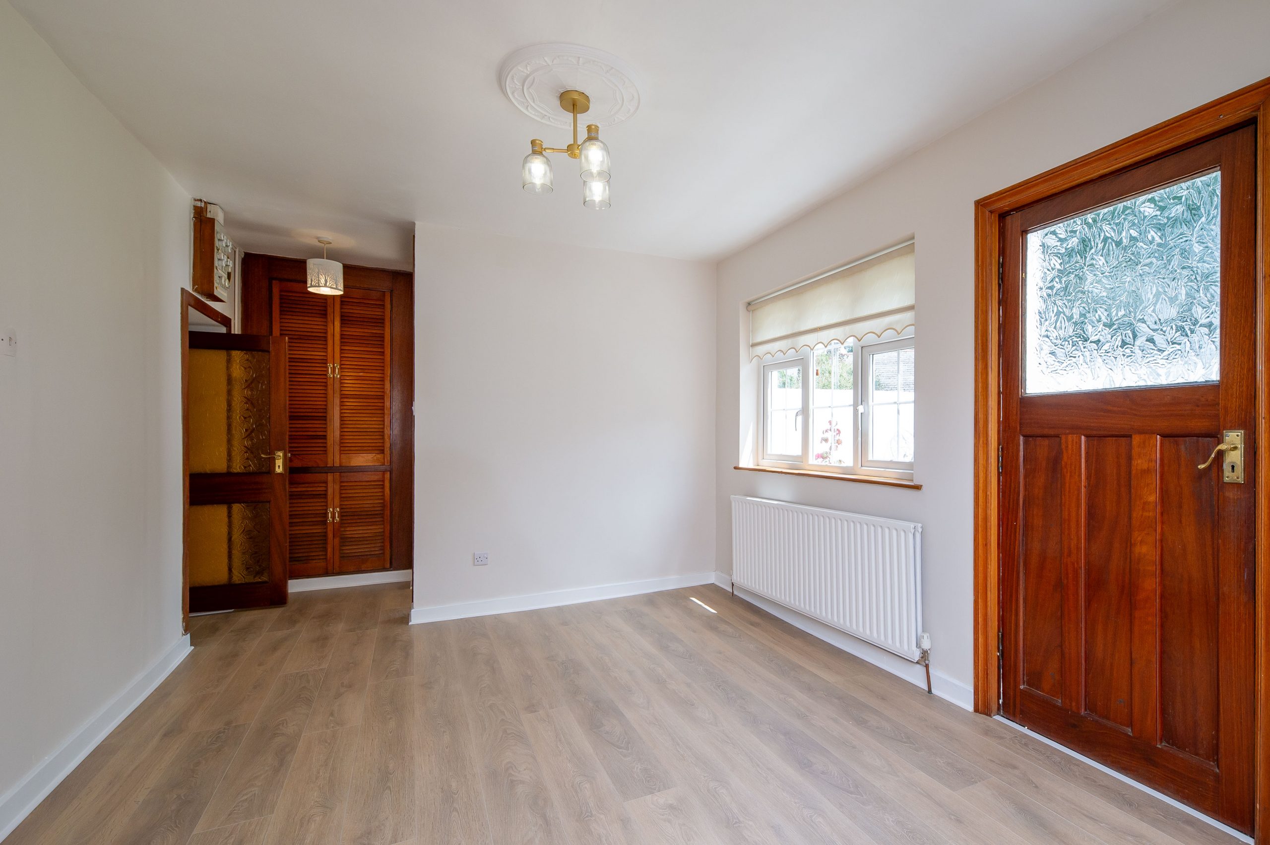 Bedroom 1: 3.46m x 3.35m, With blonde oak flooring (12mm), fitted wardrobes.