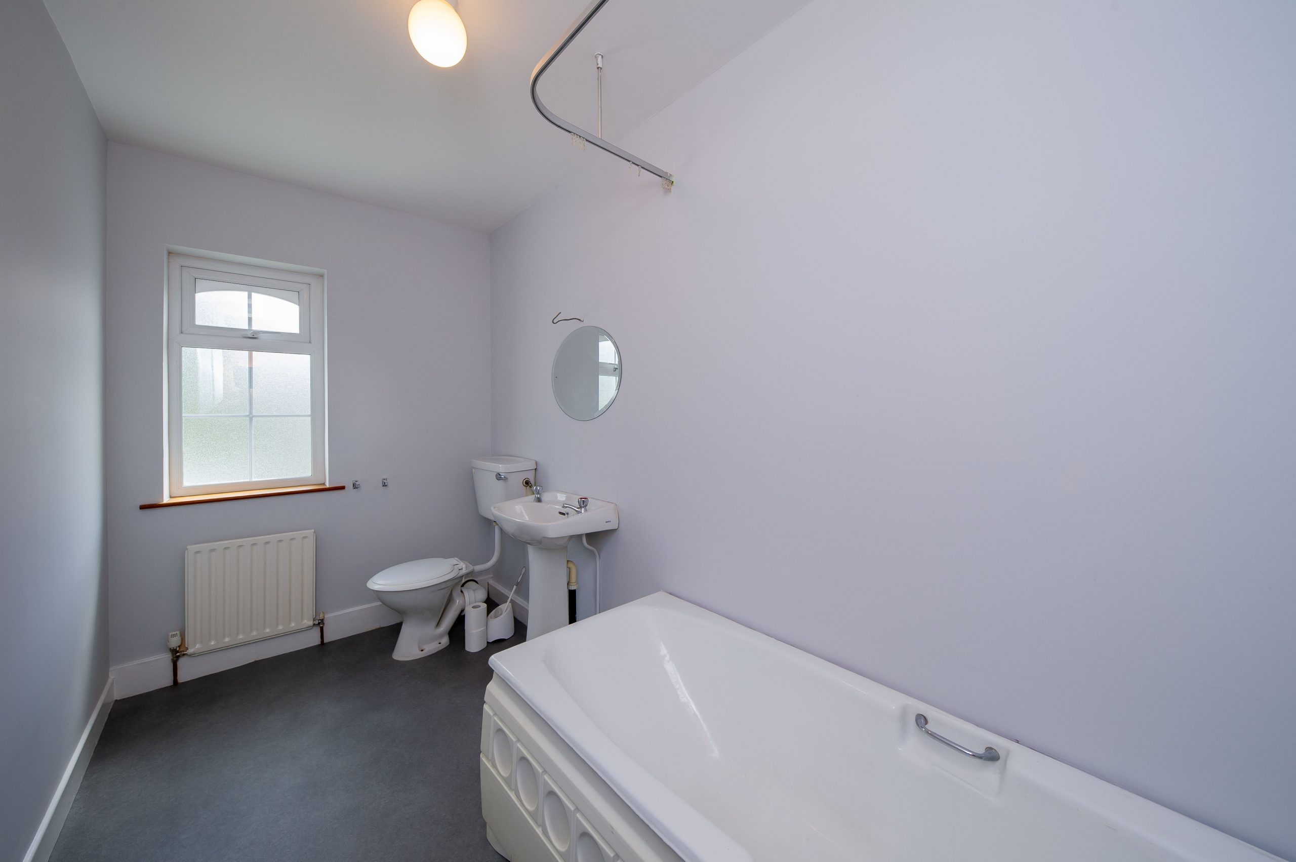 Bathroom: 3.37m x 1.69m, With shower over bath, wash hand basin, WC.
