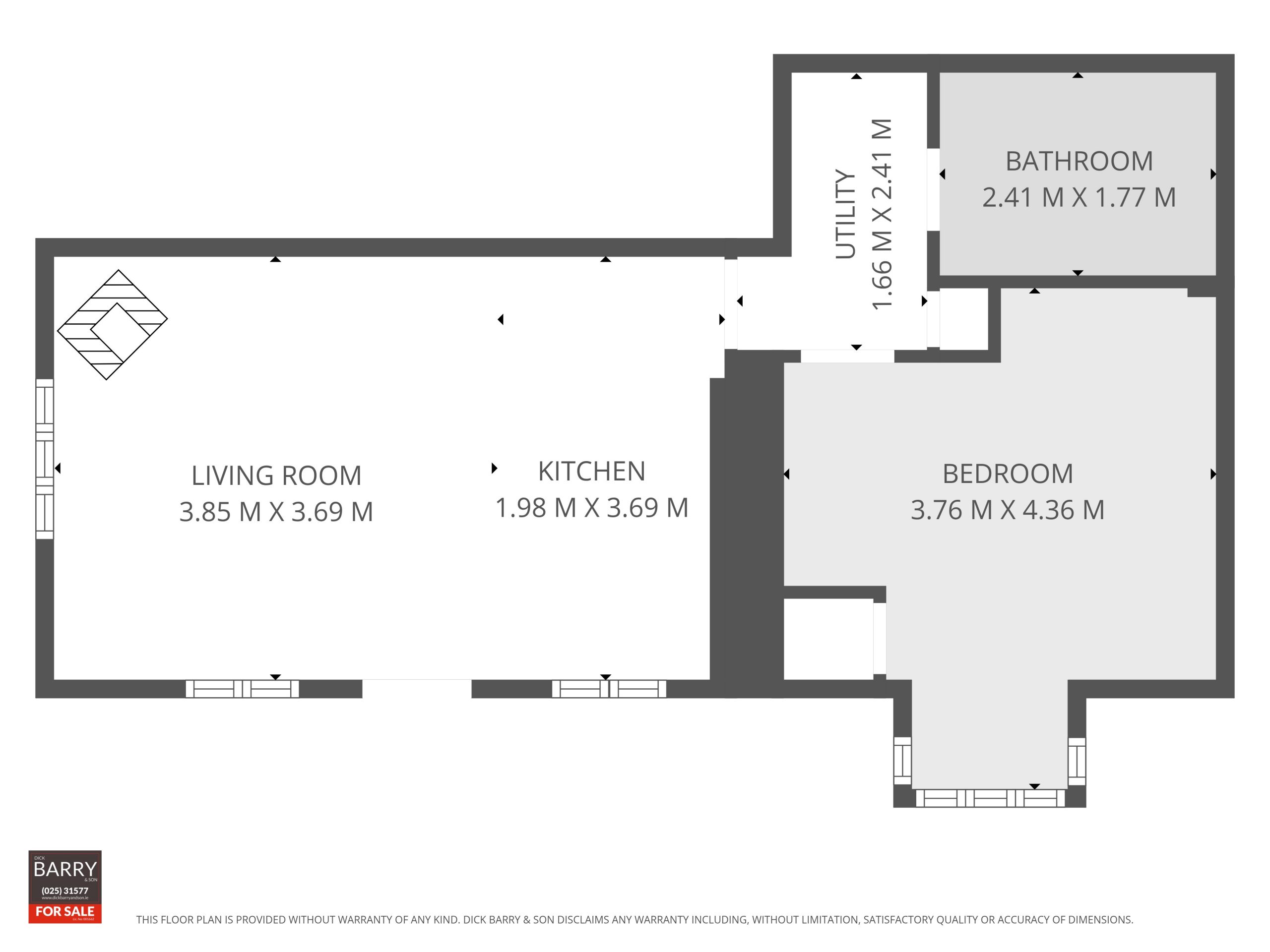 Dick Barry & Son are delighted to bring this 1 bedroom bungalow with ample parking to the market. Whilst this property would require refurbishment throughout, it offers the new owners the opportunity to put their “own stamp” on it. There is a large area to side offering great potential to extend if desired. Located 4km from Kilworth Village and only 8.5km to both Fermoy & Mitchelstown.