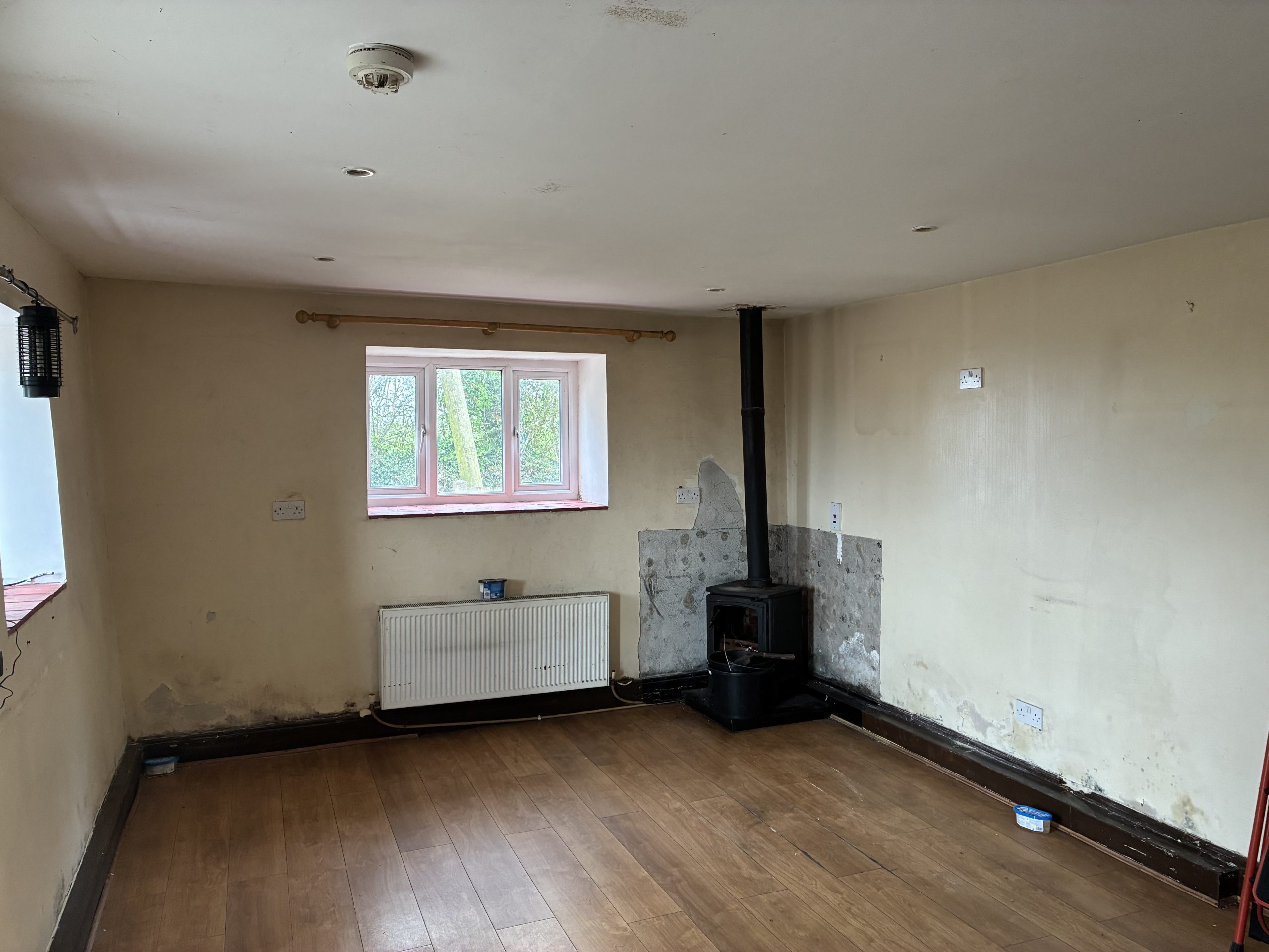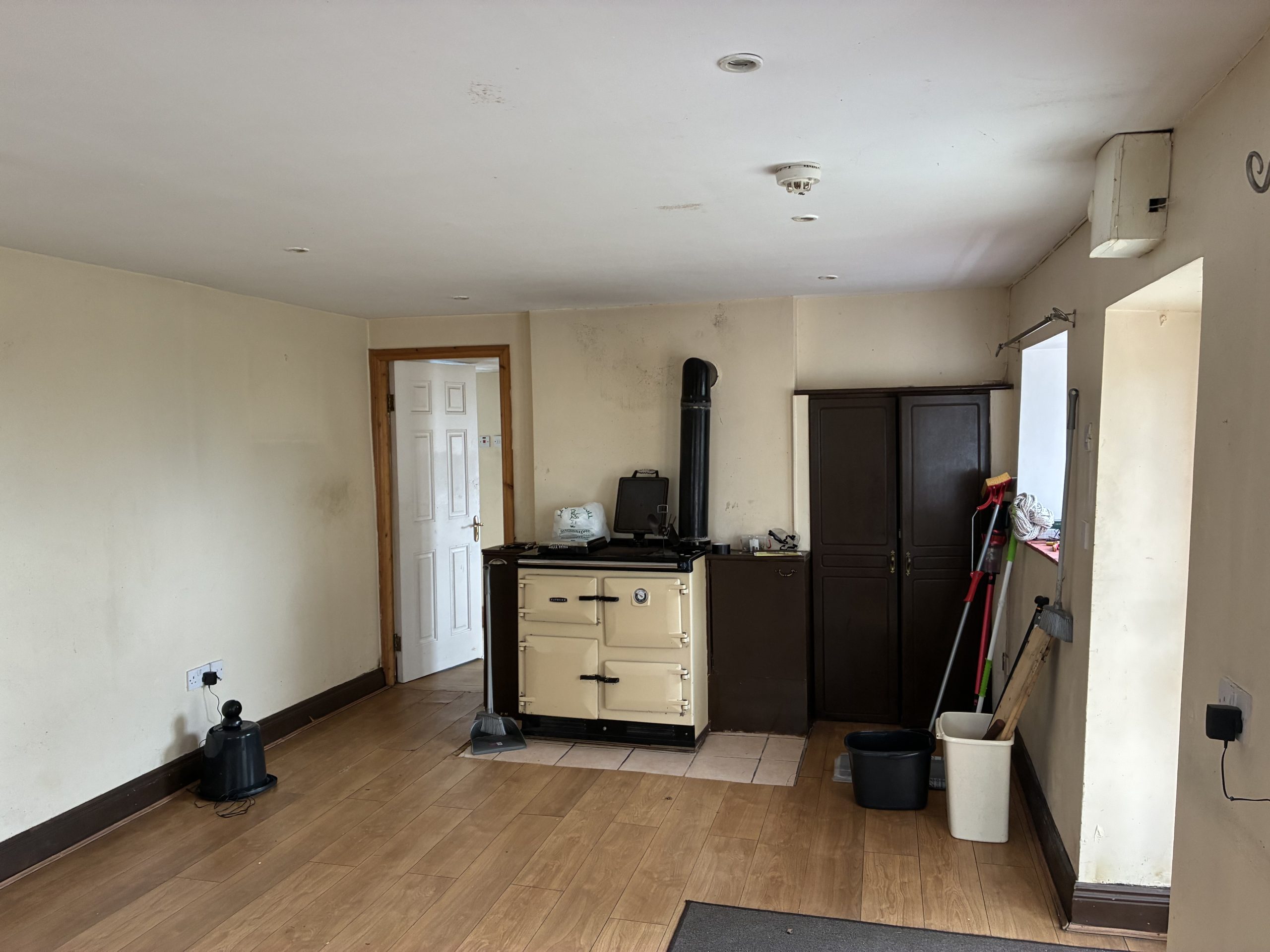 Living Room: 3.85m x 3.69m, With laminate flooring, aga cooker.