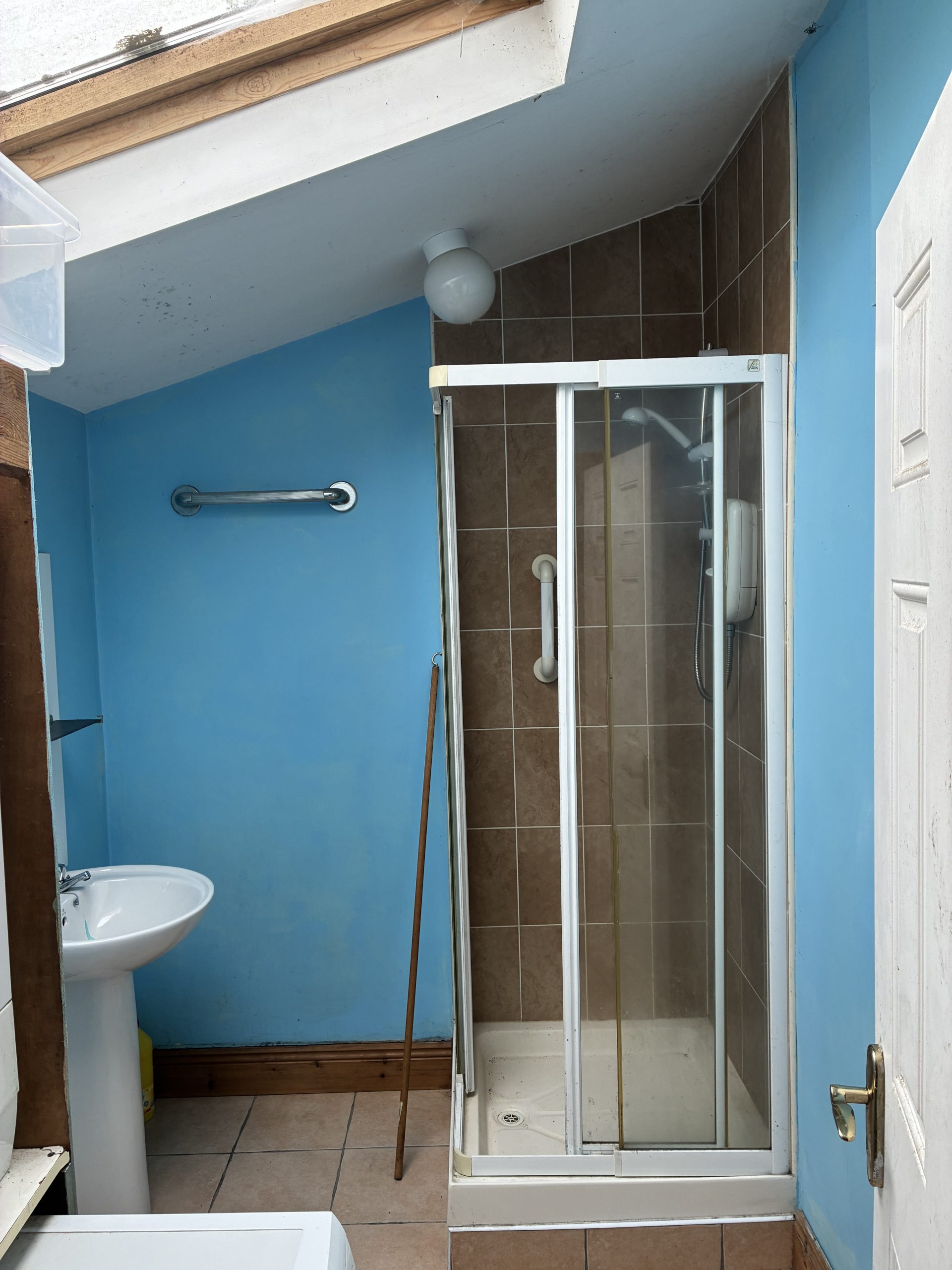 Shower Room: 2.41m x 1.77m, Partly tiled with electric shower, wc & whb.