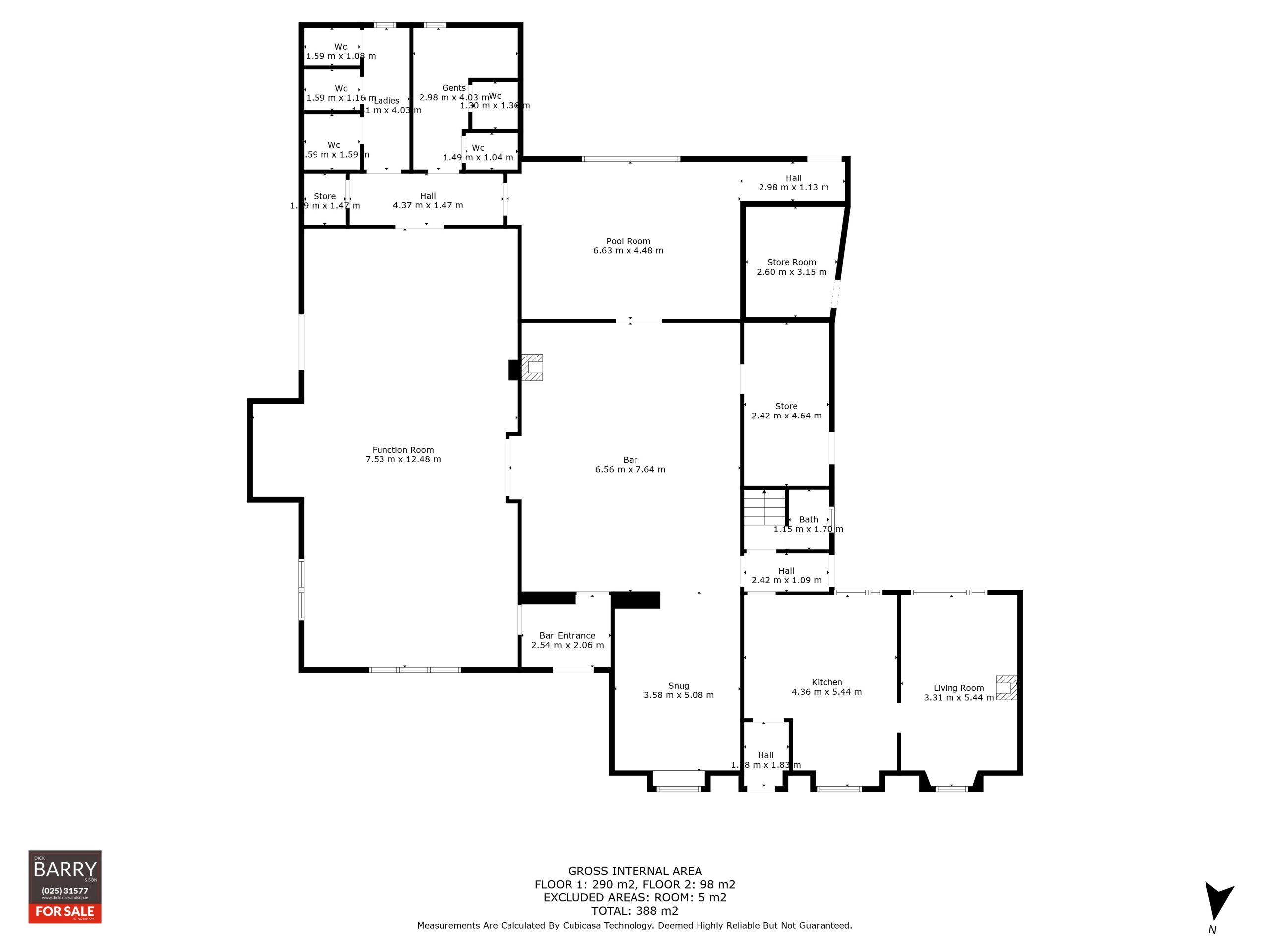The ground floor is full of old world character with central fireplaces and solid fuel stoves, period style tiling and mahogany bar counters throughout. The public bar is in excellent condition throughout comprises of bar, snug area, a function room, a games room with pool table, store rooms serving the bar, along with a private kitchen, living room, and WC.